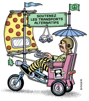 Venez découvrir l’univers satirique d’Andy Singer, une belle manière de prendre du recul sur la place de la voiture dans nos vies !