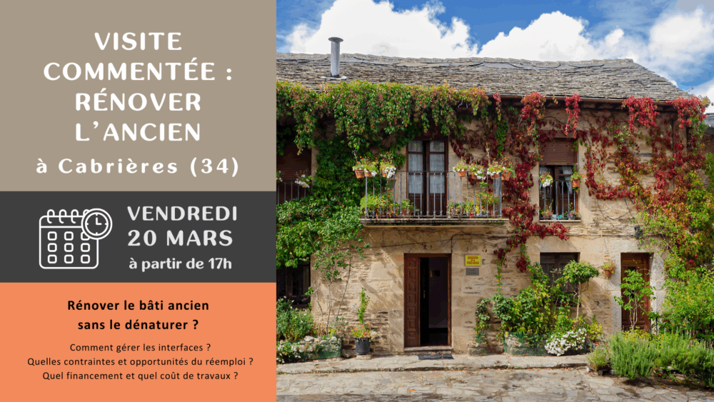 Particulier·e ou professionnel·le, vous êtes intéressé·e par la rénovation de bâti ancien ? Vendredi 20 mars à partir de 17h, l’association Gefosat, en partenariat avec la CAPEB de l’Hérault, Pays Cœur d’Hérault et Soliha Hérault, organise la visite d’une maison ancienne rénovée.